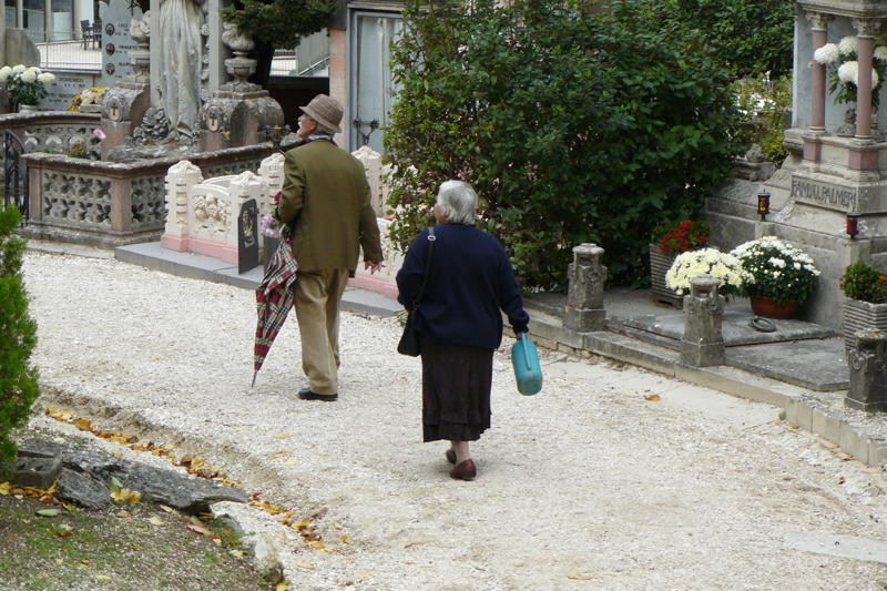 We wanted to understand more about these holidays so we visited Spoleto's cemetery. Tradition dictates that chrysanthemums be placed upon the tombs of deceased family members. We found a richness of colors and tombs that were architecturally astounding. At each corner we turned, we were greeted with an explosion of flora and memorials of stunning artistry. I became a bit emotional when watching the darling little old men, obviously lonesome for their lost women.