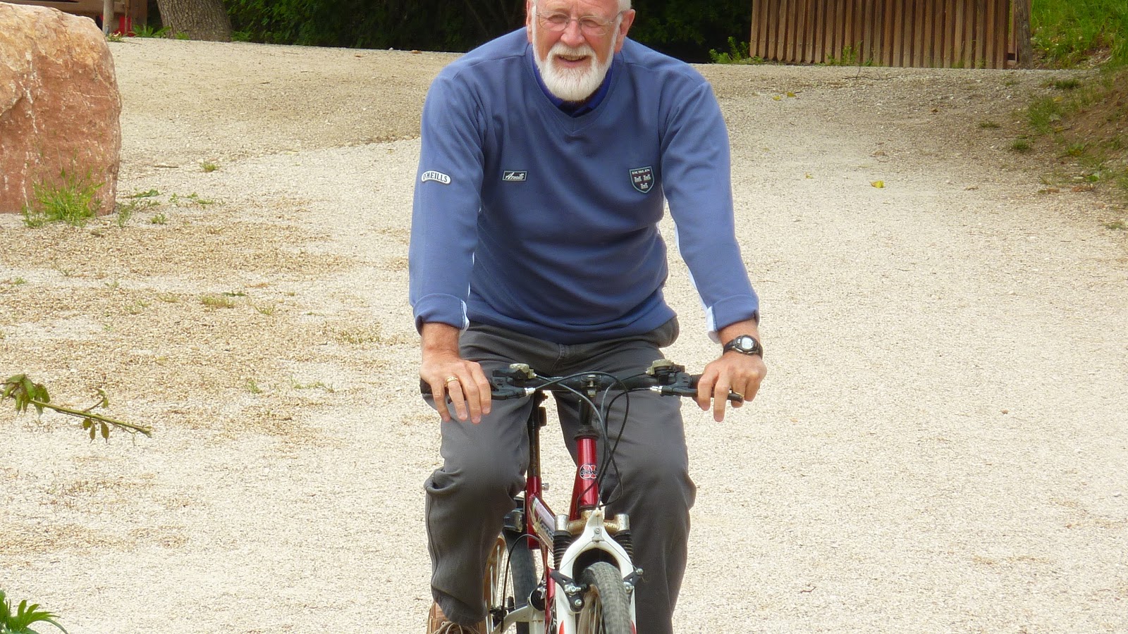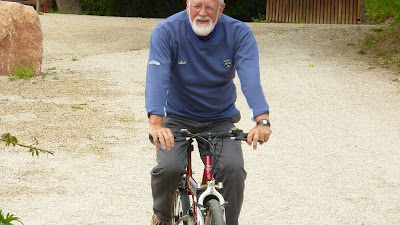 | So Paul can say he rode through Italy... it was only in the parking lot, but he's on a bike. |