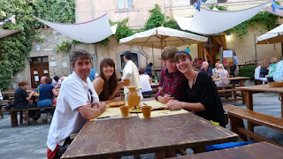 We returned to Bevagna for their Il Mercato Delle Gaite with a brief frolic in the newly emerging sunflowers. Nothing says "Italy" quite like sunflowers, men in tights and ancient churches on a warm summer eve.