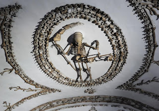 Sounds like the perfect way to spend the afternoon!Over the next 240 years, until 1870, the friars would become experts at, shall we say, "interior design." Bones, such as skulls, leg bones, pelvises and such, were separated and employed to make elaborate columns, arches, and floral designs with great flourishes. Actually, if you squint your eyes, you might be able to forget that you're looking at the skeletal remains of 4,000 bodies believed to be Capuchin friars as well as poor Romans.
