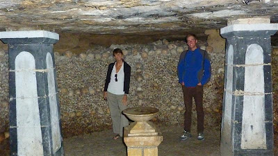 | Catacombes de Paris are an underground ossuary (Noun: A container or room into which the bones of dead people are placed) holding about 6 million Parisians. Opened in the late 18th century, the underground cemetery became a tourist attraction on a small scale from the early 19th century, and has been open to the public on a regular basis from 1867. This is an interesting "look" at Paris and it's history and one that we really looked forward to. |