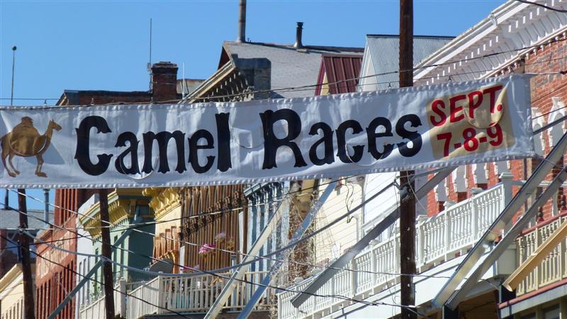 About the races, in 1960, on the 100th anniversary of the first camel to arrive courtesy of the U.S. Army (who first brought camels to the arid American West and consequently to the Comstock where they were used to transport salt for the reduction of ore and to carry general supplies to the growing Boomtown), Virginia City would play host and challenge those far and near to an annual event that would test the riding skills of anyone willing and able to stay mounted from a starting point to a finish line. In 1962, they added ostriches. I'm not quite sure when the zebras got involved.