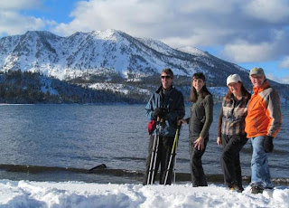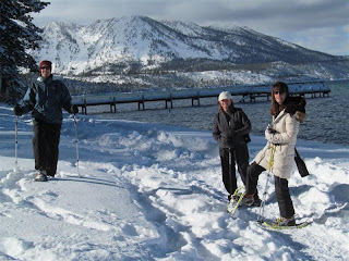 Our friends, Bob and Jenny, are experienced snowshoers, and the perfect companions for our first foray into the powdery unknownHiking lakeside and through the historic Tallac site was dream-like.  We experienced such wonders:  deep, fresh, fluffy snow; stunning sun-drenched scenery; bald eagle spotting; snow angel making; and great company!  It really can't get much better than this.