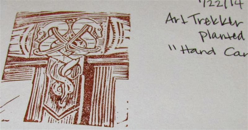 This is one of the amazing stamps we found today.  Carved by 'Art Trekker', and representing two of the 72 exquisite dragons that adorn Vikingsholm Castle, this was a fabulous reward for our searching.